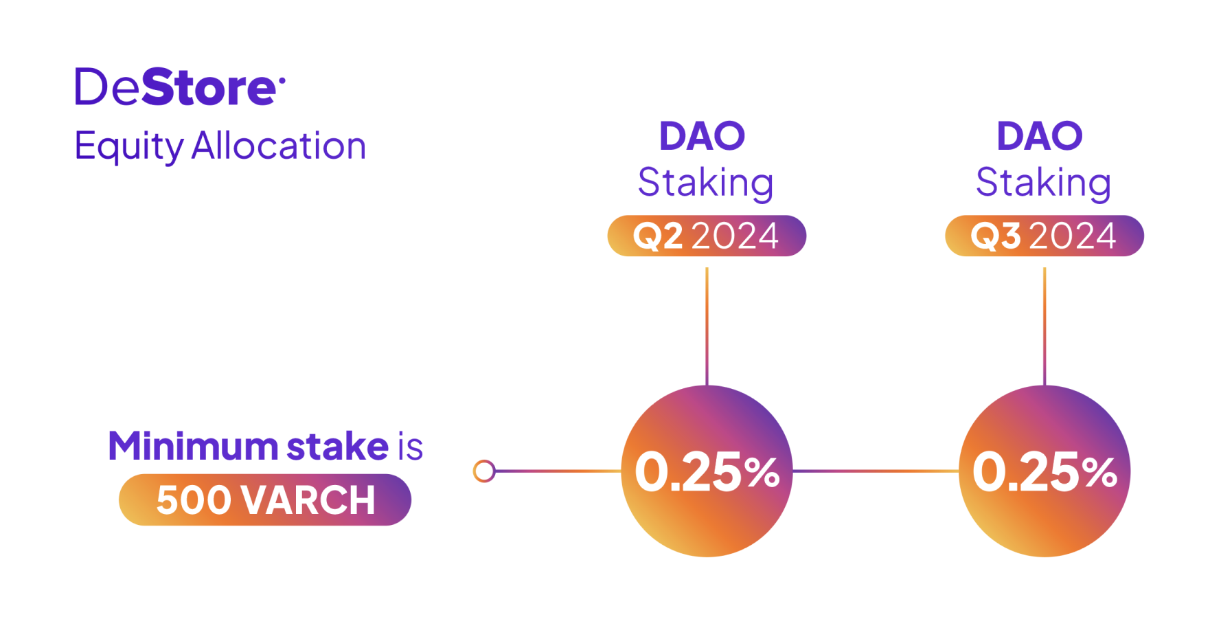 DeStore Initial Stake Pool Offering (ISPO); DeStore is allocating 0.5% equity to those staking their $VARCH tokens with us for at least 5 out of 6 months over Q2 and Q3 2024. The minimum allocation is 500 $VARCH.